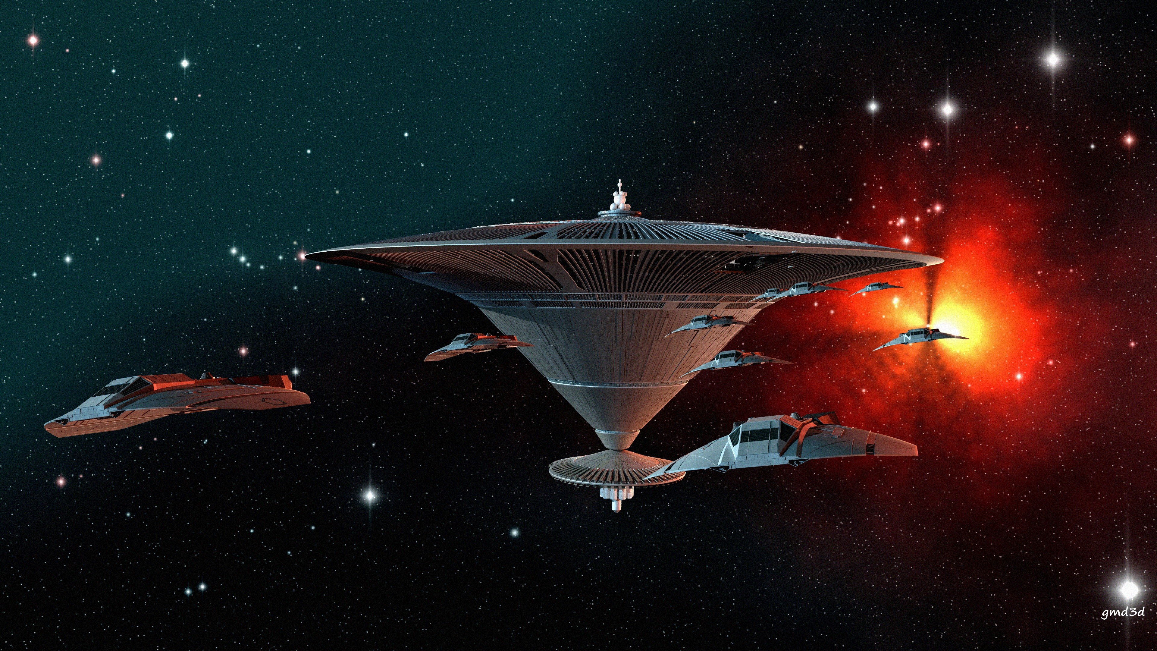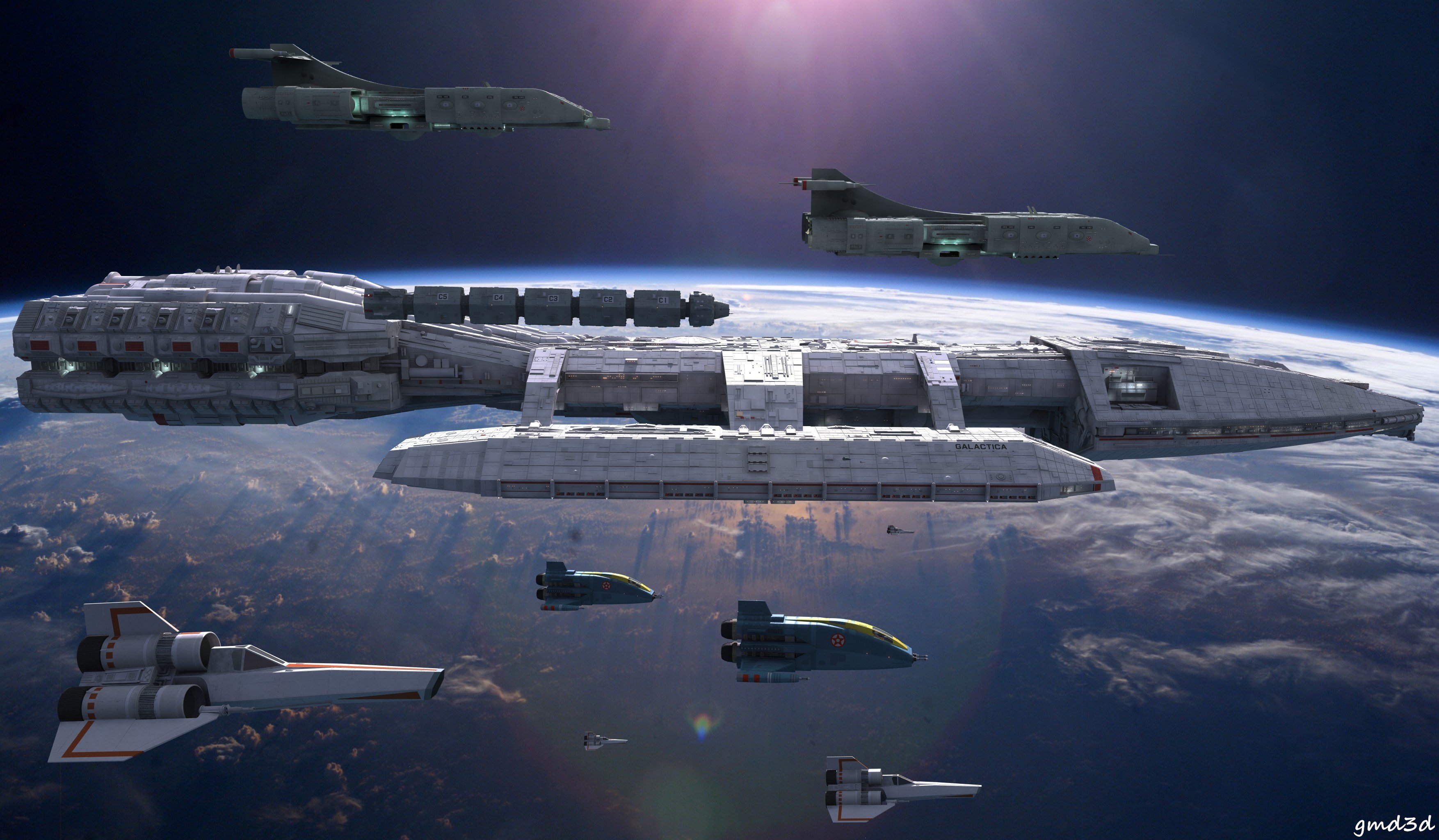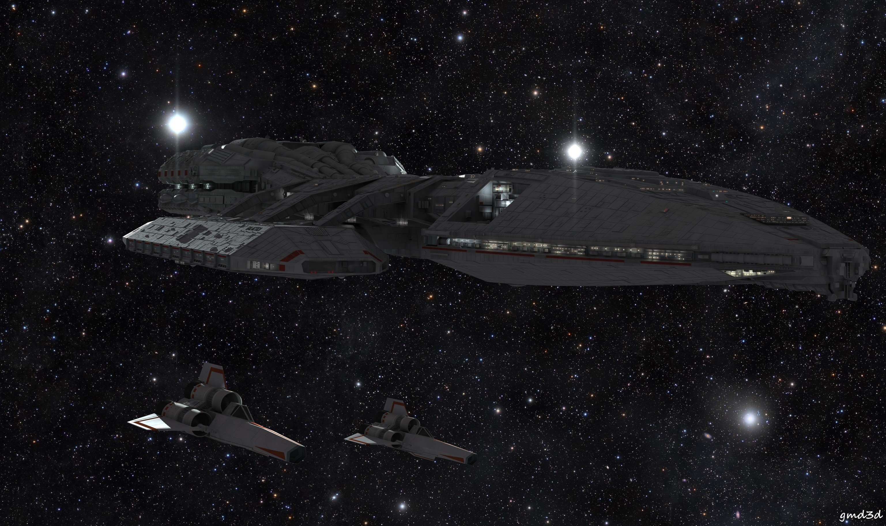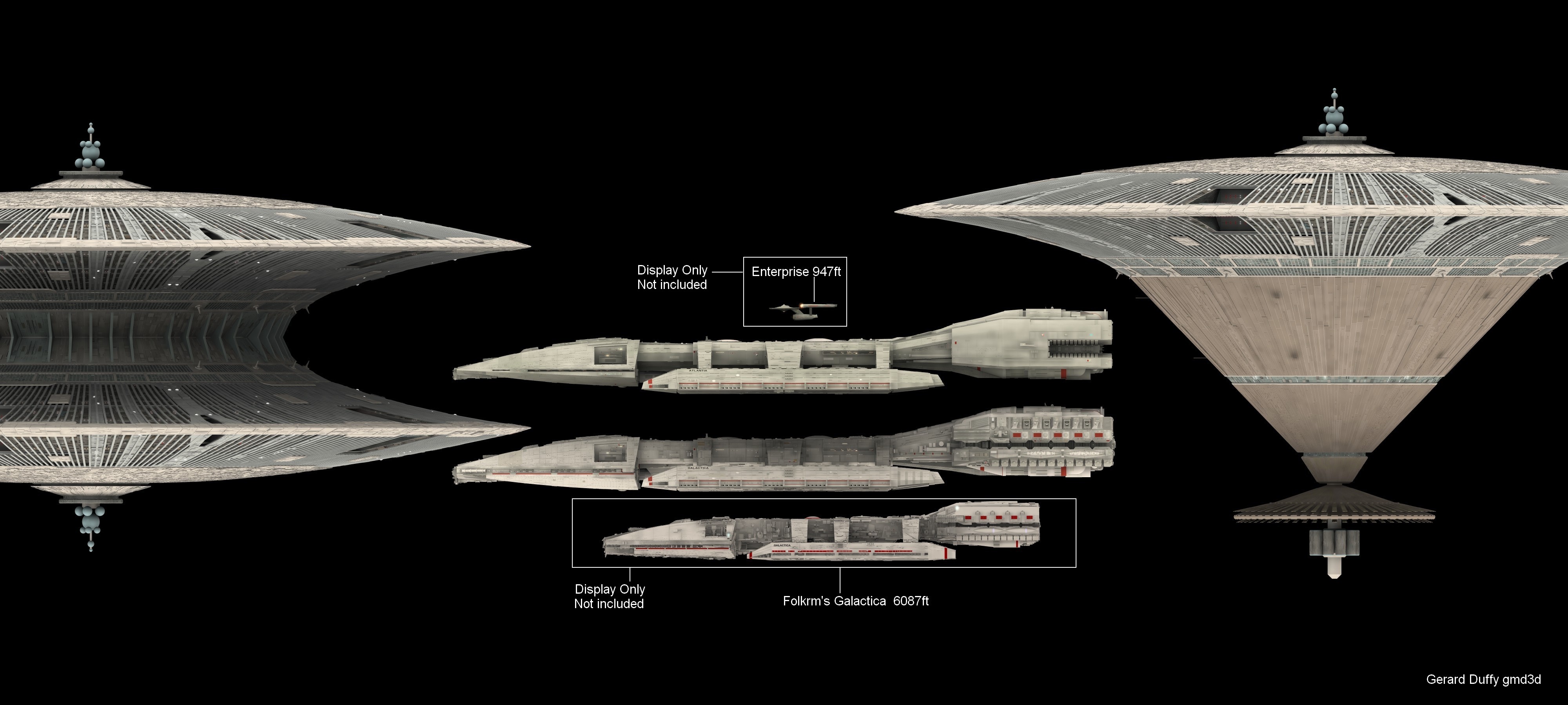 2 Battlestar Designs 1st based on concept art by Ralph McQuarrie and a hybrid Battlestar from the TOS show